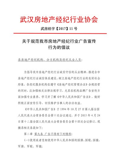 关于规范我市房地产经纪行业广告宣传行为的倡议