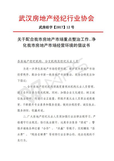 关于配合我市房地产市场重点整治工作、净化我市房地产市场经营环境的倡议书