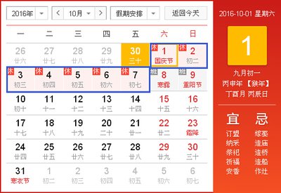 十月一日(星期六)至 十月七日(星期五)放假调休。 十月八日(星期六)恢复正常上班。
