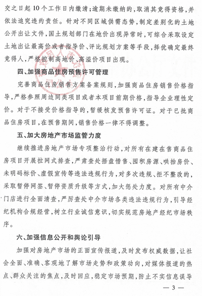 完善商品住房销售方案备案规则,加强商品住房销售价格指导,严格参照周边同类项目或者本项目前期价格,指导企业理性定价。对于不接受价格指导的,暂缓核发预售许可证。对于已批商品住房项目,在预售期间,销售价格一律不得调整。