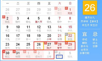 元月二十六日(星期四)至 二月三日(星期五)放假调休。 二月四日(星期六)恢复正常上班。