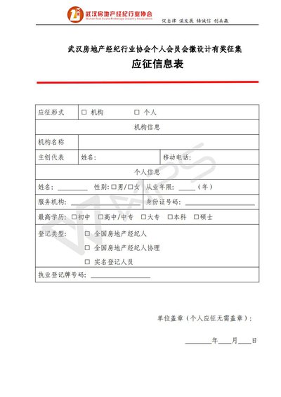 为弘扬行业精神,彰显房地产经纪从业人员丰采和智慧,武汉房地产经纪行业协会现拟开展协会个人会员会徽设计有奖征集活动。现将有关事项通知如下: